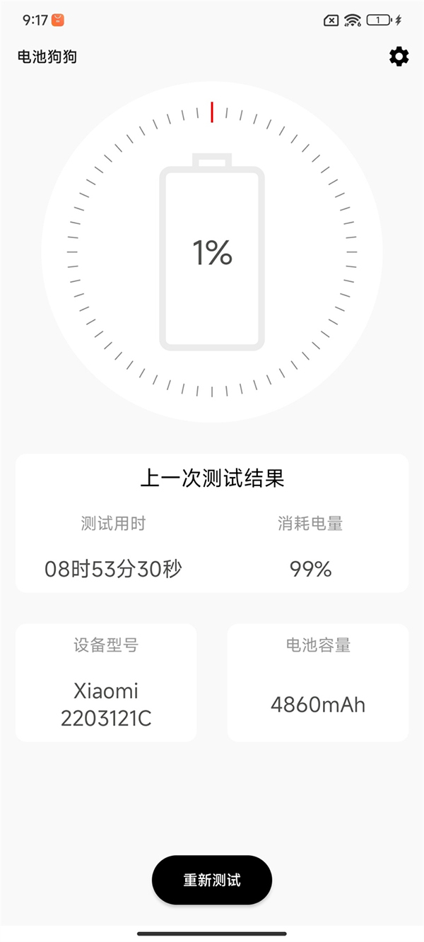 對于續(xù)航情況,我們使用專業(yè)續(xù)航測試工具——電池狗狗進行測試。