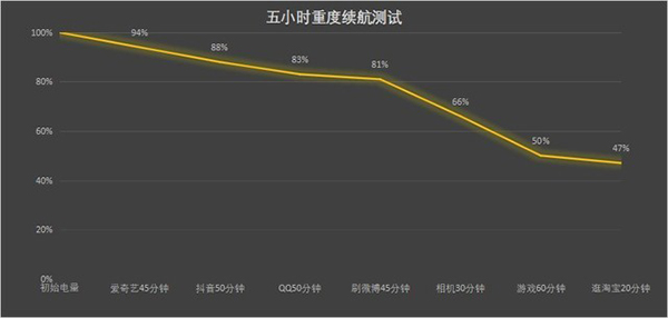 我模擬了大家日常常用的七個用機場景,根據(jù)結(jié)果,我們可以看出,當(dāng)測試了五個小時后OPPO Reno8 Pro+還有47%的剩余電量。其中,在視頻錄制以及打游戲時,該機的耗電量最大,但如果我們?nèi)粘K⑽⒉?、看視頻比較多,OPPO Reno8 Pro+有能力為大家提供一天半的續(xù)航表現(xiàn)。