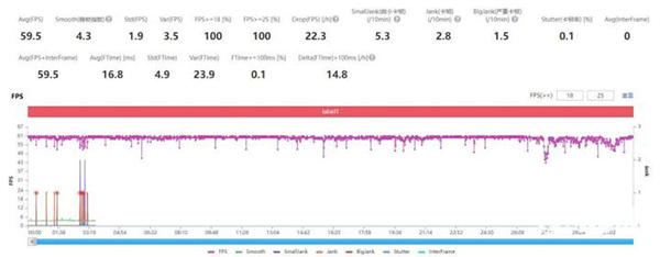 再來看對(duì)手機(jī)性能要求很高的游戲《原神》,測(cè)試中使用X模式,游戲畫質(zhì)極高,開啟60幀運(yùn)行模式,測(cè)試中選取稻妻地圖進(jìn)行連續(xù)的跑圖、打怪。騰訊ROG游戲手機(jī)6 Pro運(yùn)行30分鐘平均幀率高達(dá)59.5幀,無論是跑圖還是打怪,幀率曲線穩(wěn)定如一,全程沒有因?yàn)闇乜夭呗詫?dǎo)致鎖幀。