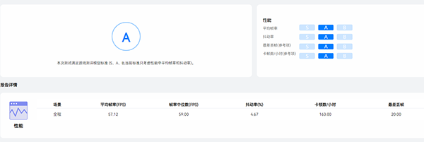 在20分鐘游戲后,小米12S Pro提供了約57.12幀的平均幀率,整體的游戲過程還是比較流暢的。