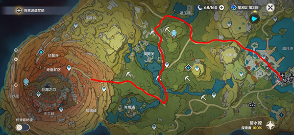 然后是非常吃配置的原神,ROG游戲手機6 Pro已經(jīng)適配了720P分辨率。單獨交代一下測試路線,測試路線固定,如圖所示游戲時間統(tǒng)一調(diào)為19:00整由璃月港南部錨點向北出發(fā),經(jīng)過北部錨點后沿天衡山北側(cè)官道一路向西北前進,途徑遁玉陵、靈矩關(guān)和青墟浦,最后抵達層巖巨淵上層,路上有怪打怪,有礦挖礦,不進行地圖傳送或打開設(shè)置菜單等影響瞬時幀數(shù)的操作。每輪測試用時30分鐘。游戲畫質(zhì)設(shè)置為全最高,關(guān)閉動態(tài)模糊,幀數(shù)改為60幀。這次我們測試了四輪。