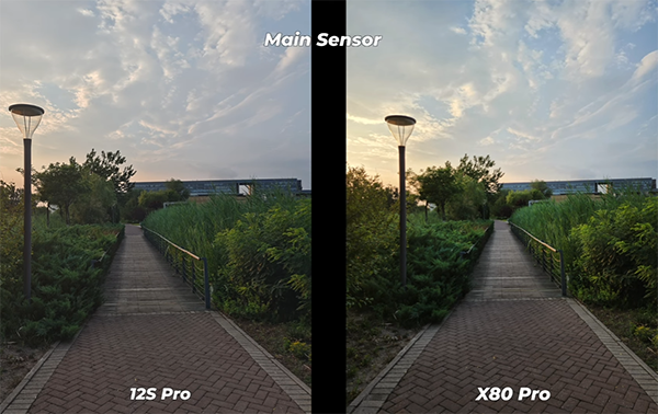 首先是主攝拍照對(duì)比,通過(guò)直出的照片來(lái)看,右邊vivo X80 Pro畫(huà)面色彩對(duì)比度和亮度更高,暗部細(xì)節(jié)更豐富。反觀小米12S Pro這邊亮度明顯低了不少,同時(shí)暗部細(xì)節(jié)也有丟失。