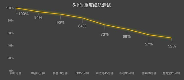 經(jīng)過了5小時重度續(xù)航測試后,vivo Y77還剩52%的電量。整體來看,vivo Y77的續(xù)航表現(xiàn)可圈可點,應付用戶一天的手機使用需求綽綽有余。