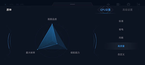 需要注意的是,小米12 Pro天璣版要想獲得原神720P的最大分辨率,需要先進(jìn)入自帶的游戲空間App,選擇原神并在下面的GPU設(shè)置檔中選擇高質(zhì)量,然后進(jìn)入游戲才行。