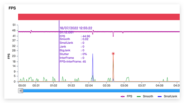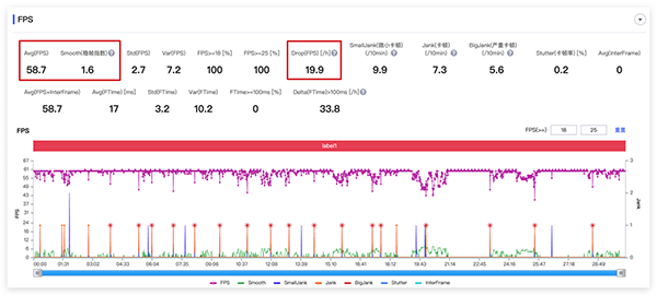 如下圖所示,iQOO 10 Pro平均幀率達(dá)到了58.7fps,穩(wěn)幀指數(shù)僅為1.6(越低越好,一般游戲類 < 8):
