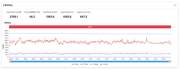 再來看看“插幀”后的功耗表現(xiàn)。如下圖所示,《原神》游戲中,其它測試條件不變,開啟「優(yōu)化功耗」后,iQOO 10 Pro的功耗此時(shí)僅為4.55W左右(2273mW*2),遠(yuǎn)低于常規(guī)模式下的5.4W。