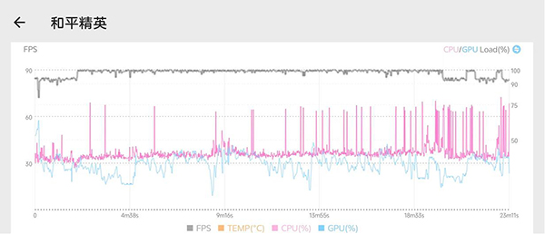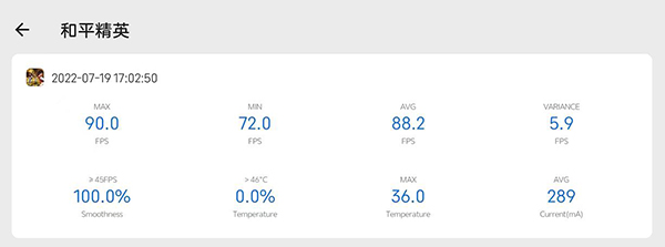 其次是《和平精英》,將畫質(zhì)調(diào)整為“流暢+90FPS”,在半小時的游戲流程中,努比亞Z40S Pro的表現(xiàn)也基本全程維持在90幀左右,平均幀率達到了88幀,確實穩(wěn)定且流暢。