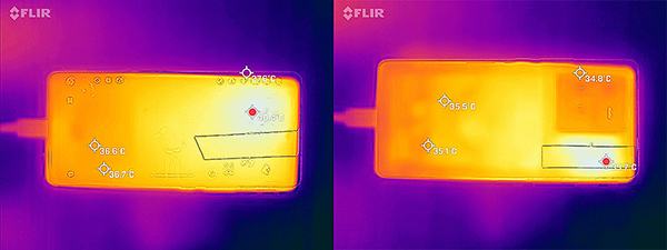 《原神》60幀高特效,關(guān)閉動(dòng)態(tài)模糊設(shè)置下,打開(kāi)游戲插幀中的優(yōu)化功耗,這時(shí)游戲幀率來(lái)到了90fps,不過(guò)測(cè)試軟件顯示為45fps,實(shí)測(cè)半小時(shí)后,游戲的幀率幾乎沒(méi)有任何變化,一直維持在90fps,這時(shí)機(jī)身溫度最高處在正面屏幕,溫度約為40.4℃,背面機(jī)身溫度在攝像頭旁邊也基本達(dá)到了40℃。