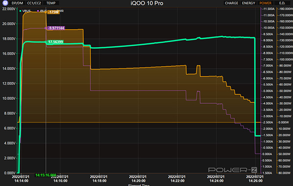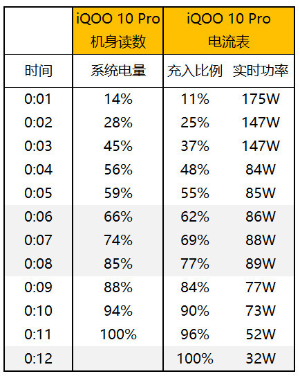 最常用的50%-80%電量區(qū)間里,iQOO 10 Pro一直在用友商百瓦級(jí)快充的峰值功率在充電。即便最后的10%電量,功率也是44W-65W快充的峰值功率。這充電功率,想慢都難。