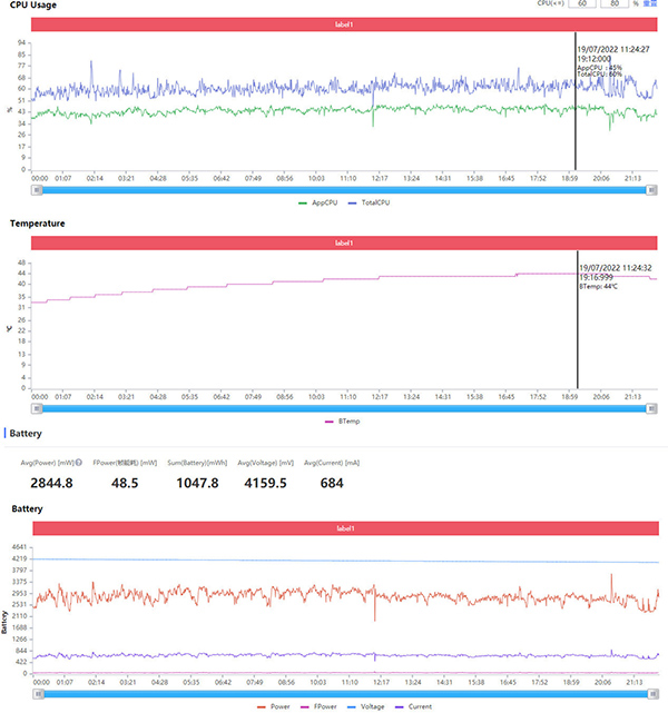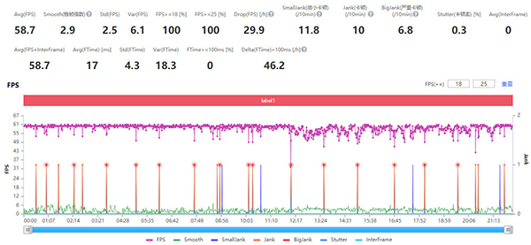 原神最高畫質(zhì)60幀關(guān)閉動(dòng)態(tài)模糊,22分鐘下來(lái)58.7幀,在12分鐘開始出現(xiàn)波動(dòng),平均功耗5.6W,最高溫44度左右。貌似這已經(jīng)是驍龍8+的基本盤了。