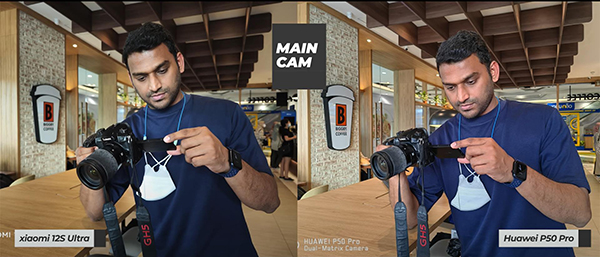 在室內(nèi)環(huán)境中,光線完全是依賴室內(nèi)射燈來進(jìn)行的照明,小米12S Ultra和華為P50 Pro之間拍攝的照片區(qū)別還是比較明顯的。