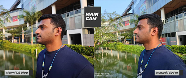 小米12S Ultra拍攝的人物皮膚和華為P50 Pro拍攝的人物皮膚相比,更加偏黃色多一些,華為P50 Pro拍攝的人物皮膚則偏白色多一些。