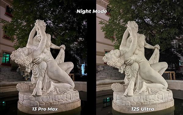 相比而言,小米12S Ultra拍攝的照片中,不光是雕塑的細節(jié)表現(xiàn)豐富,同時周圍的環(huán)境也清晰可見,所以小米12S Ultra拍攝的夜景效果要更加出色。