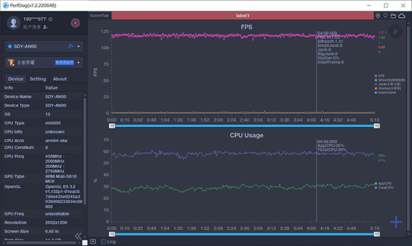 在王者這款游戲中,我開(kāi)啟了極高幀率,超高分辨率,高清畫(huà)質(zhì),以及還有抗鋸齒等模式之后,可以看到,在整個(gè)游戲中,幀率基本都維持了118幀左右,游戲體驗(yàn)非常流暢,和其他的旗艦游戲手機(jī)相比并沒(méi)有任何區(qū)別。