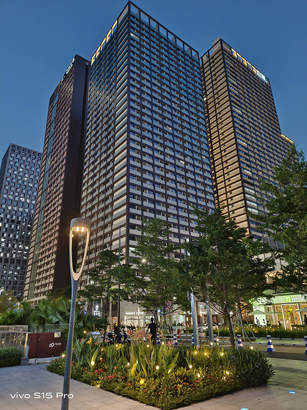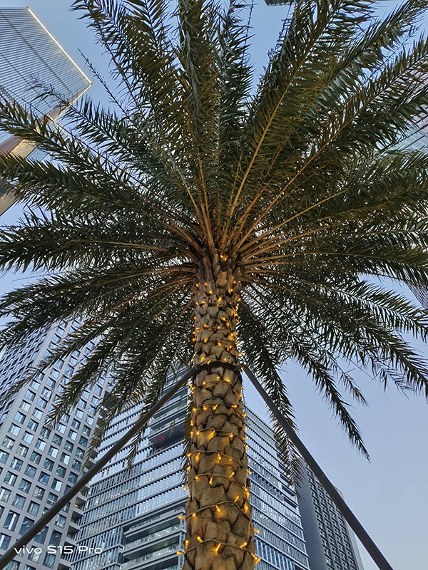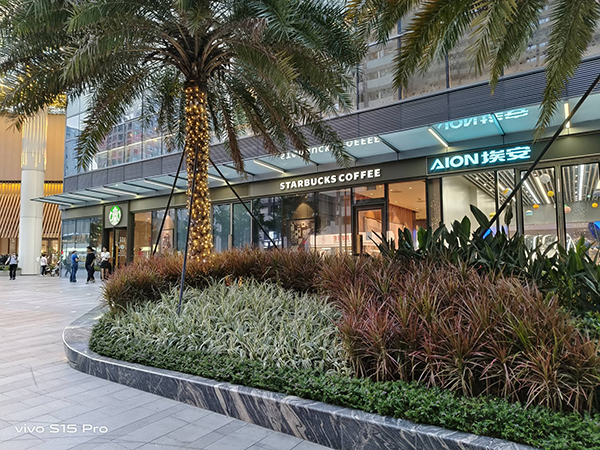 如圖可以看到,vivo S15 Pro對IMX766V的調(diào)整非常成熟,整體色彩濃厚但不艷麗,中心畫面銳度足夠,細(xì)節(jié)保留不錯,綠植、燈光、樓層、天空、廣告牌色彩展示很精準(zhǔn),即便放大查看圖片也不會有失真感覺,解析力優(yōu)勢明顯。