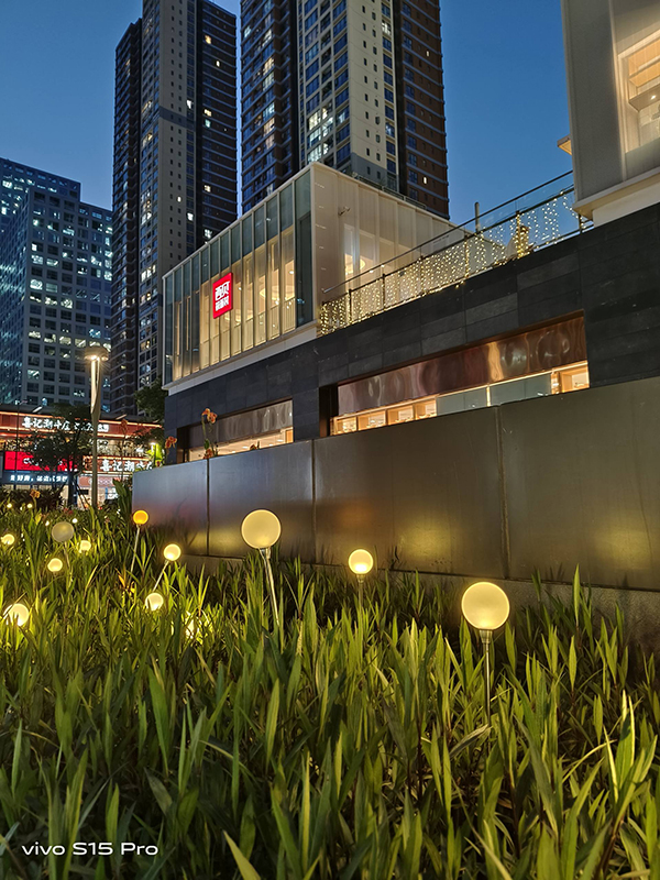 至于最考驗手機(jī)成像的夜間環(huán)境,vivo S15 Pro表現(xiàn)有些讓人意外,圖中畫面清晰明亮幾乎看不到噪點(diǎn),諸如路燈、裝飾燈強(qiáng)光源壓制效果明顯,沒有出現(xiàn)溢出現(xiàn)象,復(fù)雜光源環(huán)境下vivo S15 Pro能清晰展現(xiàn)景物色彩面貌足見其夜景拍攝的優(yōu)化功底。