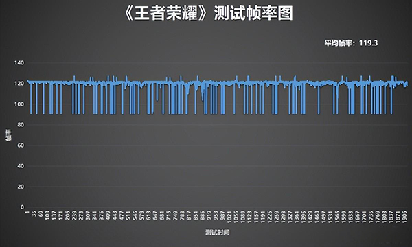 首先是《王者榮耀》,我選擇的是高清畫(huà)質(zhì)+極高幀率(120幀),30分鐘游戲游戲平均幀率達(dá)到了119.3,非常的流暢。