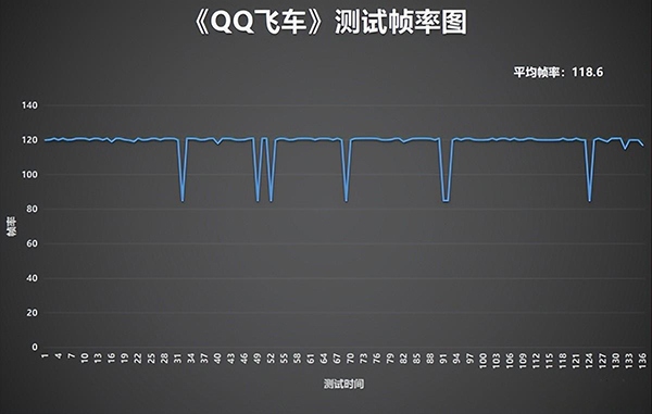 接下來(lái)是《QQ飛車(chē)》,畫(huà)質(zhì)為超高,超清分辨率,極高幀率(120幀),由于這個(gè)游戲的每局的游戲時(shí)間比較短,每局間隔時(shí)間也比較長(zhǎng),基本不會(huì)出現(xiàn)持續(xù)高負(fù)載的情況,所以這里我每次就測(cè)試一局游戲,然后測(cè)試了多次,結(jié)果基本都差不多,平均幀率在118左右,搭配上165Hz的高刷屏,玩起來(lái)非常絲滑。