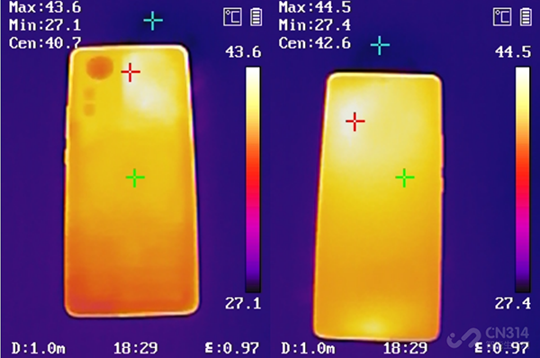 溫度方面,因為驍龍8+的能效比有著極大的提升,小米12S Pro的機身溫度在半個小時《原神》之后并不算高,正面44.5℃,背面43.6℃,握持手感顯得比較溫?zé)?,但是并不燙手,在流暢的游戲幀率和機身溫度之間,小米12S Pro算是找到了非常不錯的平衡。