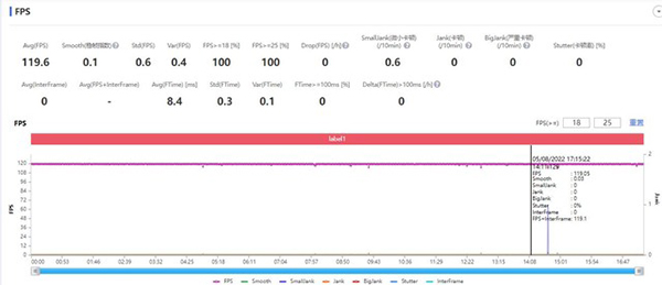 15分鐘《王者榮耀》平均幀數(shù)119.6fps