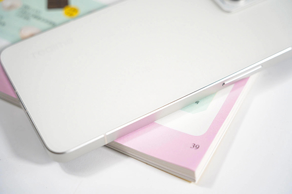 中框R角則是采用了人體工學(xué)設(shè)計(jì),在握持時(shí)比較貼合手掌。同時(shí),在握持的時(shí)候我也感覺到背面的玻璃也是區(qū)別于普通的AG工藝的,這個(gè)感知很明顯。據(jù)官方說這個(gè)叫微星冰感AG工藝,采用了全新升級(jí)的蝕刻藥水,使產(chǎn)品表面做成立體的微型四面體等等,但作為行外人,其實(shí)我很難說清楚這些工藝到底好不好,但是真我GT2大師探索版給我最直觀的觸感就是:真的“涼”,我很建議大家可以去線下的實(shí)體店去觸摸感受一下。