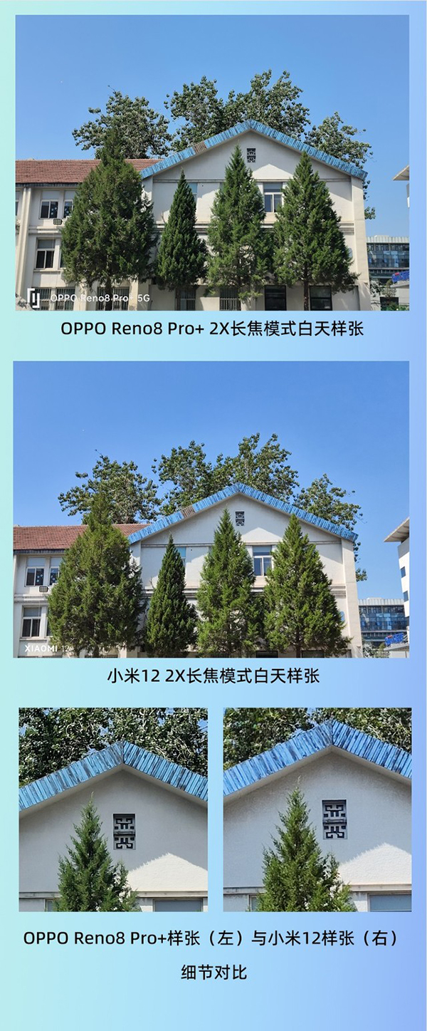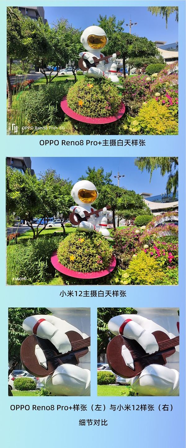 我們可以發(fā)現(xiàn)OPPO Reno8 Pro+和小米12的超廣角鏡頭與微距鏡頭配置并不相同,本次想要對比的是兩款機型有無自研影像芯片的成像差異,所以本次對比就不進行超廣角與微距樣張的對比。