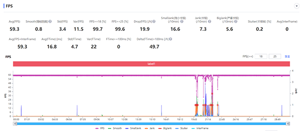 或許是因為120幀拉滿的原因?qū)е聶C身發(fā)熱的情況,我們也再次測試了《英雄聯(lián)盟手游》的標(biāo)準(zhǔn)60幀模式,中后段的波動部分為換局的準(zhǔn)備環(huán)節(jié),最后的平均幀率為59.3幀。