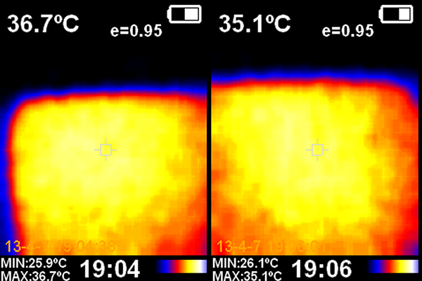 《王者榮耀》左機身正面溫度,右機身背面溫度