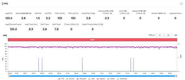 從測試結(jié)果來看:摩托羅拉X30 Pro輕松駕馭120Hz王者榮耀,平均幀率達(dá)到120.4Hz,整個曲線的連續(xù)性不錯,幀率穩(wěn)定性控制早10fps之內(nèi),相當(dāng)給力。值得一提的是:摩托羅拉X30 Pro這塊6.7英寸屏幕支持144Hz高刷新率,整個游戲過程相當(dāng)流暢。比如玩韓信這種刺客,連招釋放絲滑,123技能連續(xù)釋放快速支援很輕松。