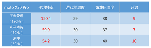 此次搭載了驍龍8+芯片的摩托羅拉X30 Pro能將驍龍8+這顆冷靜芯發(fā)揮到怎樣的程度?馬上來看。依然是熟悉的游戲測試,包括王者榮耀、和平精英和原神三款。每款游戲測試半個小時(shí),測試前后記錄溫度變化,測試過程中記錄摩托羅拉X30 Pro畫面幀率曲線波動。