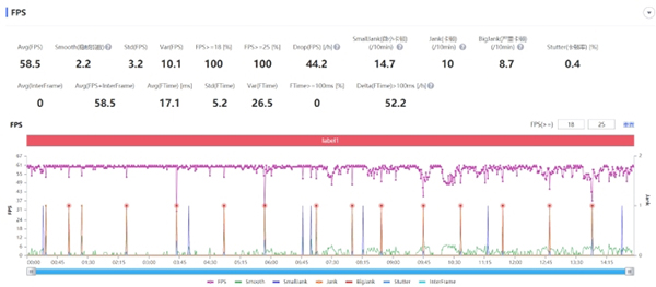 接下來(lái)進(jìn)行《原神》測(cè)試,在開(kāi)啟最高畫(huà)質(zhì)+60幀模式下,經(jīng)過(guò)近15分鐘的測(cè)試,平均幀率維持在58.5FPS。