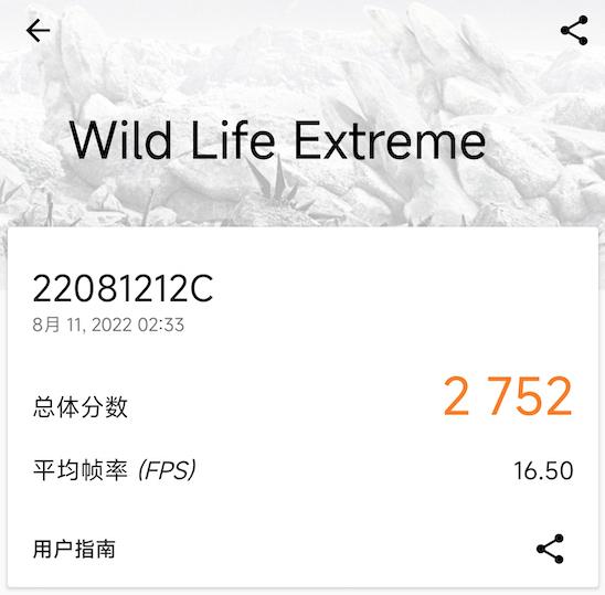 在3DMark Wild Life Extreme測試中,分?jǐn)?shù)為2752分。