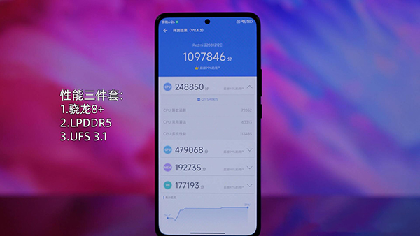 首先是大家喜聞樂見的跑分過程,109萬多的水平,今年的天花板級了。與官方跑的110萬分也相差無幾,沒有所謂的實驗室環(huán)境,沒有冰箱,沒有散熱背夾,就開啟性能模式在室溫25度下跑。跑完之后機身溫熱,跑分這關(guān)過了。
