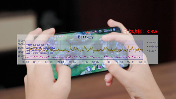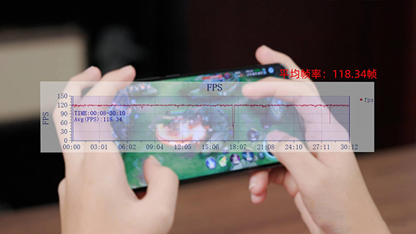 開啟游戲測試,先來王者榮耀熱熱身,半小時的王者榮耀120Hz超高清模式下,平均幀率為118.34幀,功耗3.8W,機身最高溫36.6攝氏度。這個熱身還不夠啊,機身還沒有正式的熱起來。當然這個3.8W的功耗水平也能看出整體的功耗水平不高。