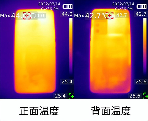 運行半小時《原神》后,我們測試了Redmi K50至尊版的機身溫度。結果如上圖所述,Redmi K50至尊版的機身正面最高溫度為44℃,背面最高溫度為42.7℃,具體游戲的時候僅有溫熱的感覺,并不會影響使用。