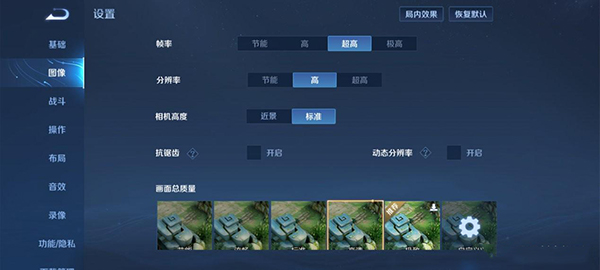 用游戲測試還是直接反映手機性能的,《王者榮耀》圖像設(shè)置:幀率選擇超高(90幀),分辨率選擇“高”,畫面總質(zhì)量選擇“高清”。