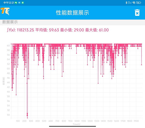 如下圖所示,小米MIX Fold2平均幀率達(dá)到了59.63fps,最大值為61fps,最小值為29fps: