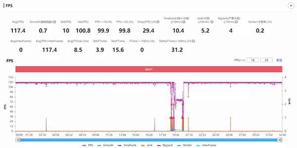首先在王者榮耀游戲中,一加Ace Pro的幀率表現(xiàn)可謂是相當穩(wěn)定,全局幾乎都穩(wěn)定在120幀左右,半小時的游戲體驗平均為117.4幀。同時得益于大面積的散熱銅管覆蓋,機身溫度并沒有達到很離譜的情況。