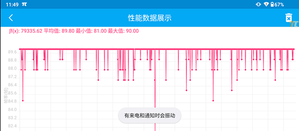 可以看到,90幀高幀率下流暢度更佳,平均值達(dá)到了89.8,最低值為81,實(shí)際游戲,感受不到掉幀卡頓的情況。