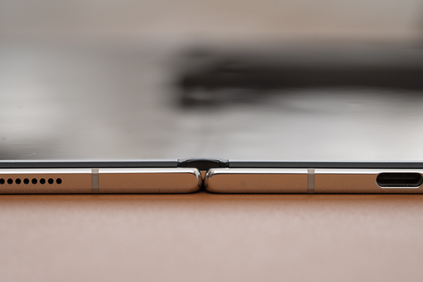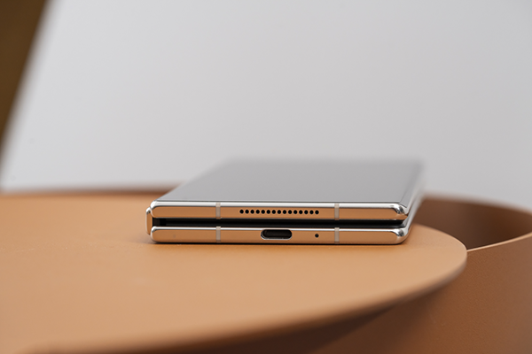 可以直觀看到,小米MIX Fold2無(wú)論是折疊還是展開(kāi)狀態(tài),中間轉(zhuǎn)軸部分所占體積都很小,展開(kāi)時(shí)可見(jiàn)轉(zhuǎn)軸寬度不到1cm,凸起情況也可以忽略不計(jì)。