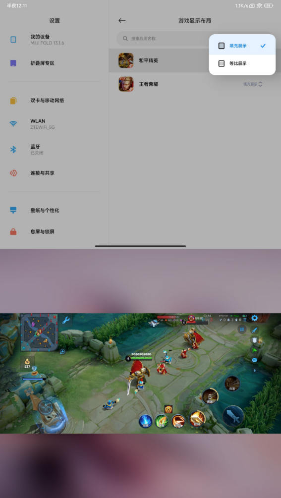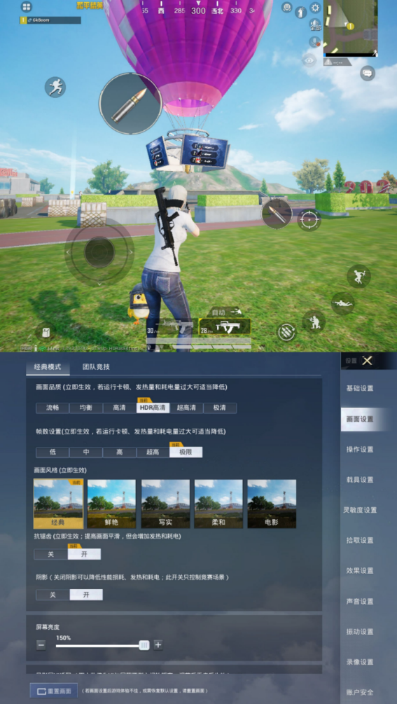 如果你不習(xí)慣這種視野,官方還提供16:9的顯示,會回到正常的手機(jī)界面,但是在大屏上玩的感覺又很不一樣。