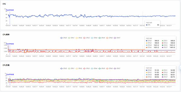 從曲線圖來(lái)看,小米MIX Fold2的SoC主頻基本維持在1.4GHz,3顆大核維持在1.6GHz;整體的幀率曲線在前半段時(shí)也有一定波動(dòng),如果以非常嚴(yán)苛的視角來(lái)看我認(rèn)為這樣的表現(xiàn)是并不算好的。