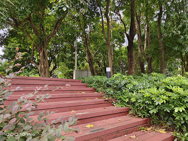 如圖所示,iQOO 10 Pro在白天拍攝時(shí)基本不會(huì)出現(xiàn)槽點(diǎn),放大查看樣張中心畫(huà)質(zhì)也在線,江水、綠植、建筑、紅色樓梯、麥當(dāng)勞廣告牌顏色分明,整體視覺(jué)效果比較舒適。最讓我意外的是圖二這種大光比環(huán)境,iQOO 10 Pro的動(dòng)態(tài)范圍和鏡頭解析力優(yōu)勢(shì)體現(xiàn)尤為明顯,亮光部分的綠植、建筑墻體,暗部場(chǎng)景的廣告牌、裝飾燈真實(shí)還原出來(lái),沒(méi)有出現(xiàn)死黑、過(guò)曝現(xiàn)象。