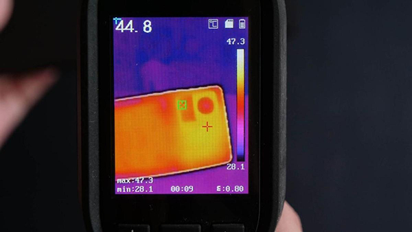 室溫28度環(huán)境下,半小時游戲后立即進行測溫,測得后蓋溫度44.8攝氏度,這樣的溫度也同樣是在高幀高畫質(zhì)原神游戲當中處于一個比較優(yōu)秀的水平。