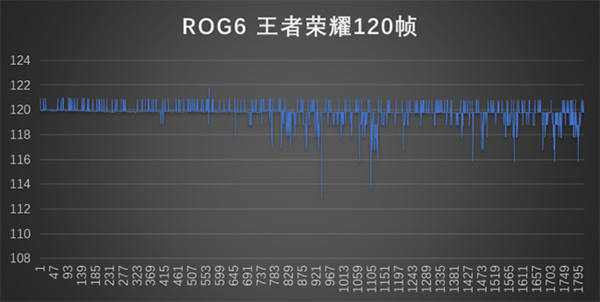 實際游戲方面,騰訊ROG游戲手機6在《王者榮耀》120幀模式下,30分鐘的平均幀率為119幀,從幀率曲線圖上來看,游戲過程中一直維持在滿幀運行。與此同時,平均功耗為3.36W。軟件監(jiān)測溫度為36.2度,溫槍實測機身背面溫度為38.2度。