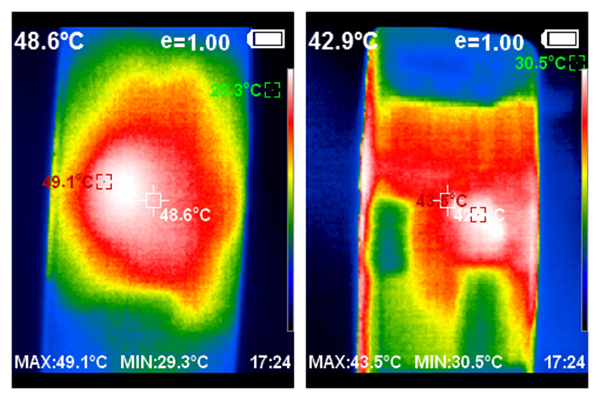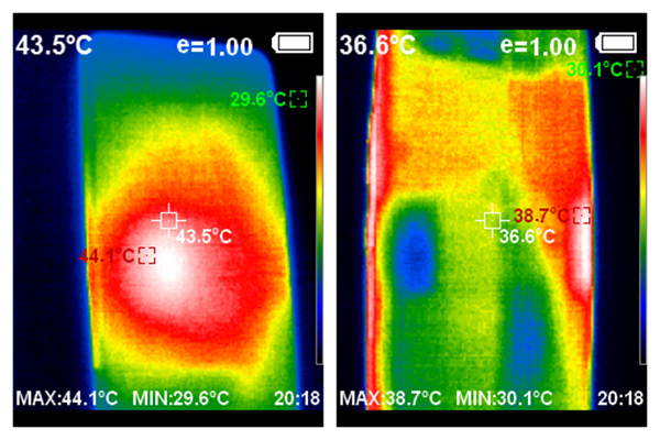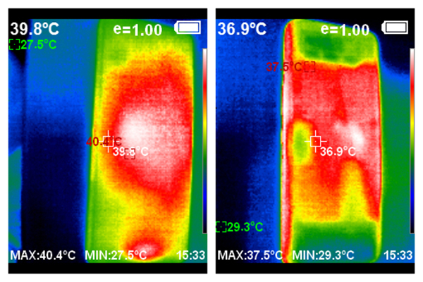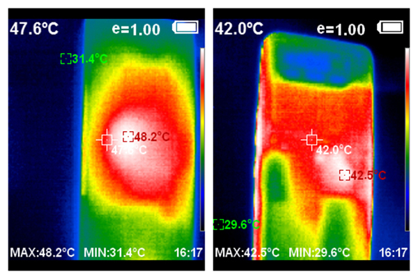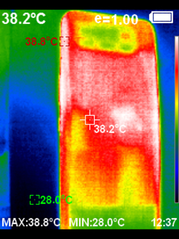 從溫槍拍攝的圖片中可以看到,騰訊ROG游戲手機6采用全新設計的矩陣式液冷散熱架構 6.0,該散熱架構CPU中置設計能夠時刻帶給玩家良好的手感體驗。整體的發(fā)熱集中在中心位置,而雙手握持的兩側溫度并不算高。同時,散熱結構注入3300mg航天級氮化硼冷凝材料,輔以兩層大面積石墨烯散熱層,使得騰訊ROG游戲手機6在重度負載情況下也能穩(wěn)定游戲幀率,滿足重度玩家游戲需求。