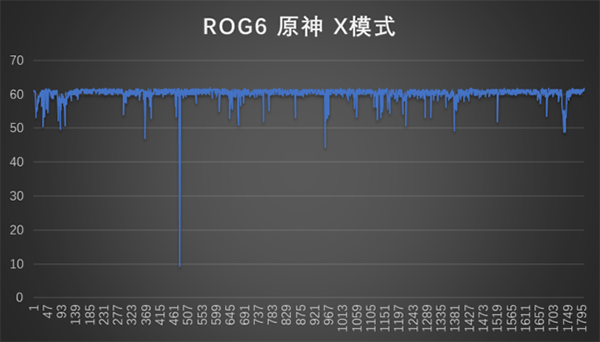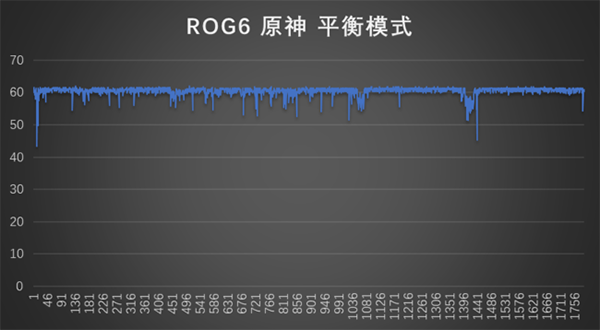 在平衡模式下,騰訊ROG游戲手機6的平均幀率為60.01幀,平均功耗為5.9W,機身正面最高溫度為48.2度,背面最高溫度為42.5度。X模式下,平均幀率為60.2幀,平均功耗為6.18W,機身正面最高溫度為49.1度,背面為43.5度。