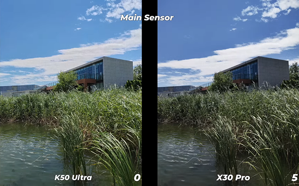 第二張主攝拍照對比,左邊Redmi K50至尊版依舊出現(xiàn)了泛白的情況,雖然天空顏色更加接近肉眼所見,但整體畫面效果并不優(yōu)秀。而右側Moto X30 Pro畫面色彩更為濃艷,飽和度更高。