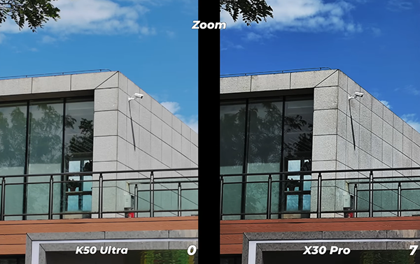 拍照變焦對比上,Redmi K50至尊版畫面素質更高,Moto X30 Pro雖然細節(jié)更多,但仔細觀看可以發(fā)現(xiàn)畫面銳化過于嚴重,而且亮度較低,比如大樓上的玻璃。