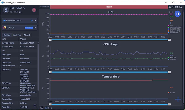 賽車競技類游戲,對(duì)流暢性的要求是非常嚴(yán)苛的,也許一個(gè)掉幀和卡頓就會(huì)與冠軍失之交臂。所以,我還測試了《QQ飛車》,這款游戲最高支持120Hz,通過幾輪的匹配比賽,游戲全程基本能保持120Hz的穩(wěn)定幀數(shù),CPU、GPU的使用率也屬于低位運(yùn)行,手機(jī)溫度為37°C,這與人體的正常體溫持平,幾乎沒有感覺到任何的發(fā)熱。